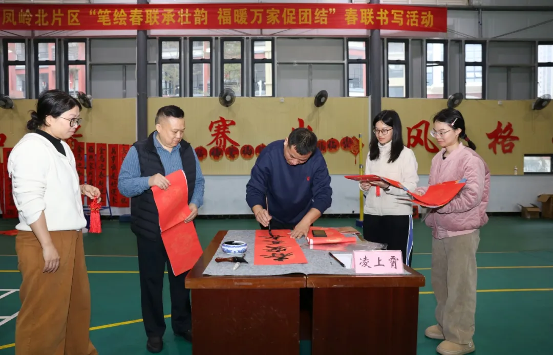 新春将至,年味渐浓。为传承中华优秀传统文化,营造欢乐祥和的节日浓厚氛围,2月5日上午,918博天堂在职工文体活动中心开展区直机关凤岭北片区职工之家“笔绘春联承壮韵 福暖万家促团结亲”春联书写活动,局党组书记、局长李勇强出席活动,局党组成员、副局长万秋参加活动,邀请广西书法协会副主席冯华春、自治区市场监督管理局书法爱好者李占平、莫文斌、葛歆婕与干部职工们齐聚一堂,以笔为媒,共迎新春。